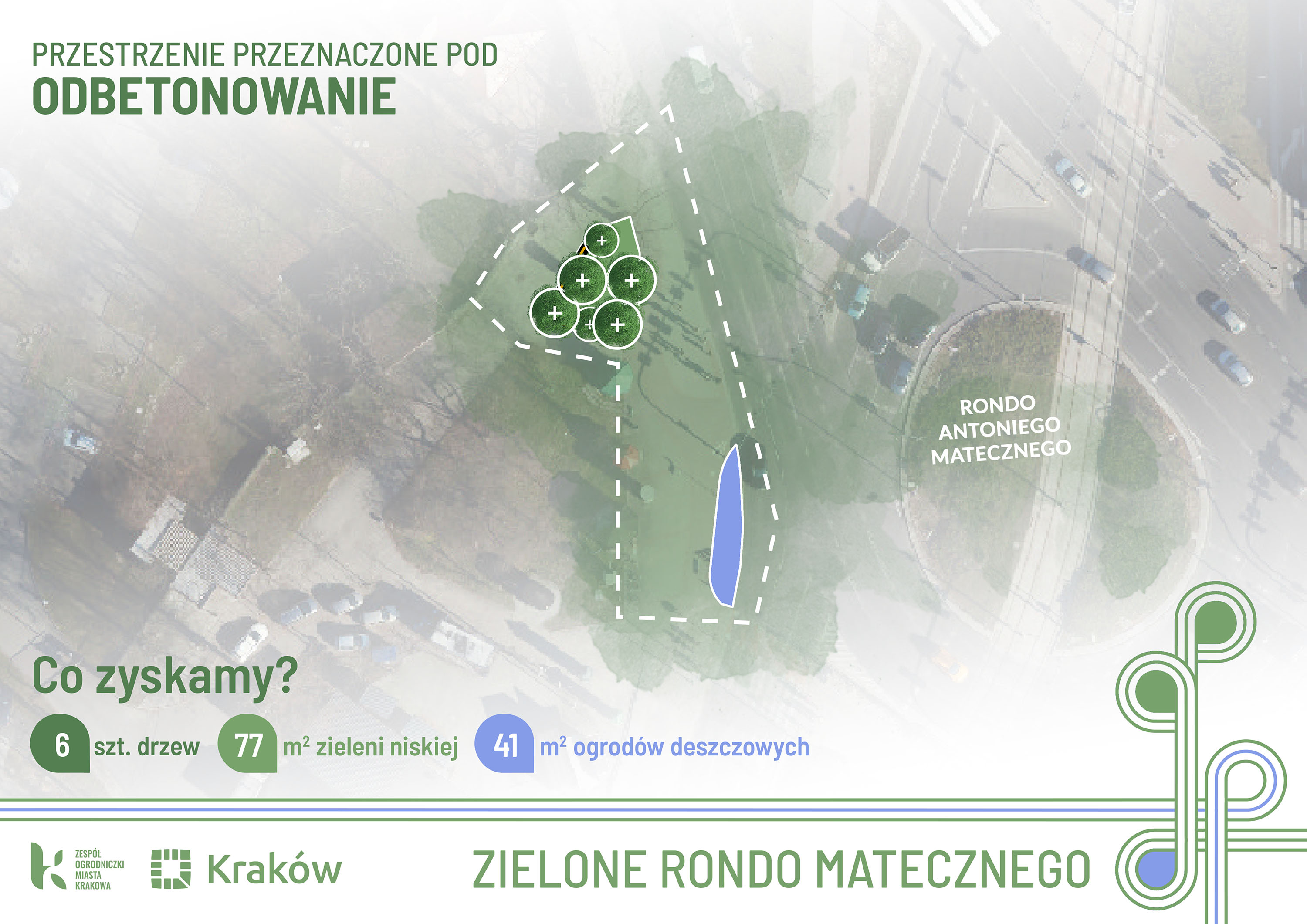 Kraków planuje odbetonowanie fragmentów niefunkcjonalnych przestrzeni utwardzonych – głównie wzdłuż ulic. Oznacza to usunięcie zbędnych betonowych lub asfaltowych nawierzchni i wprowadzenie tam zieleni retencyjnej – czyli takiej, która naturalnie chłonie wodę opadową i wspiera mikroklimat miejski.